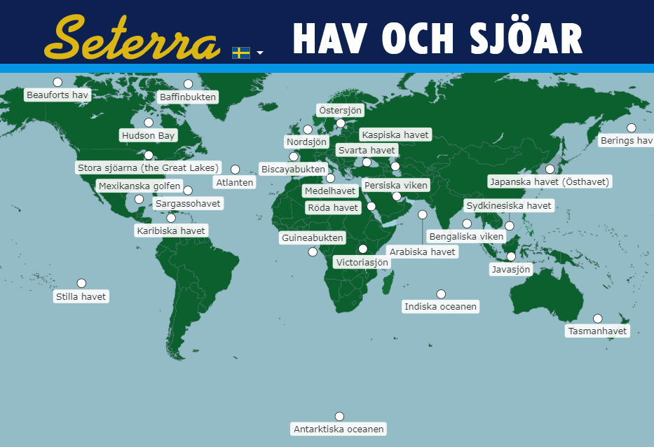 Stilla havet: Det här havet ligger mellan Amerika och Asien och är det största havet i världen. Det täcker en yta på cirka 140 miljoner kvadratkilometer.
